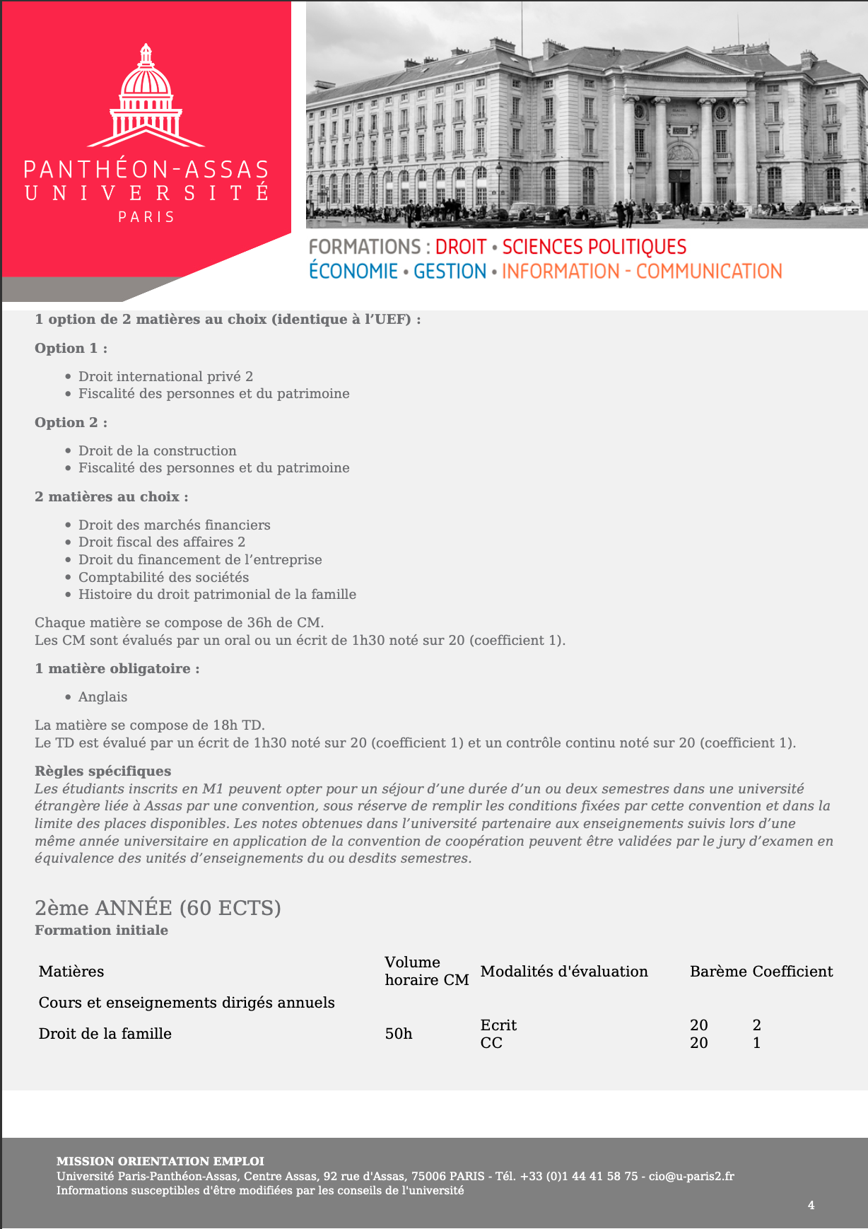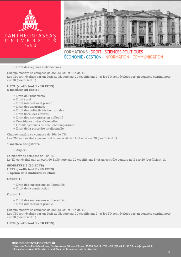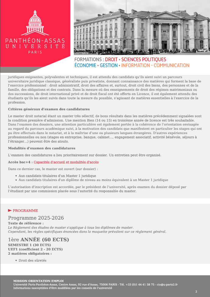Dépôt des candidatures pour le Master 2 : Dates à venir sur la plateforme de candidature de Paris-Panthéon-Assas Université.