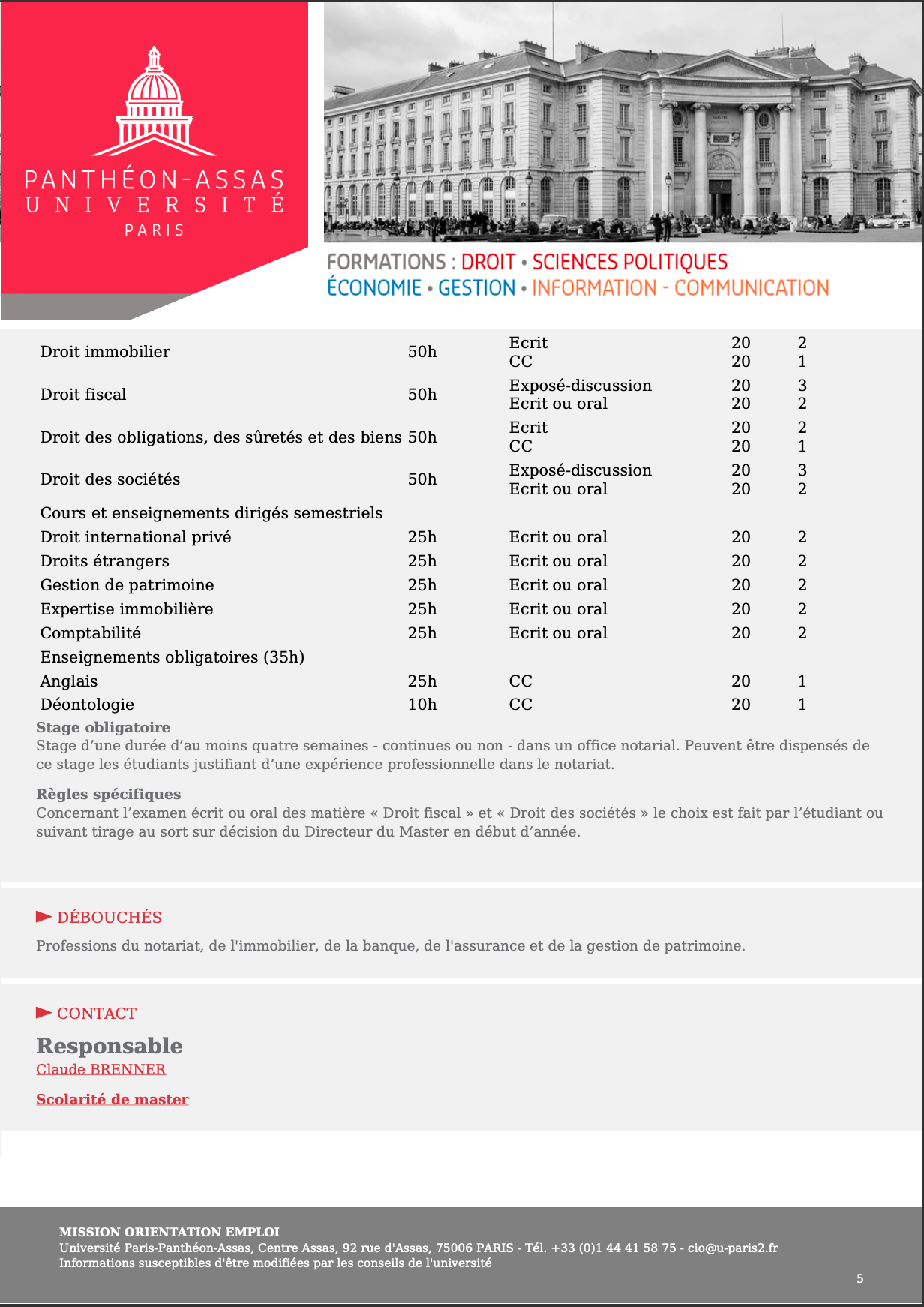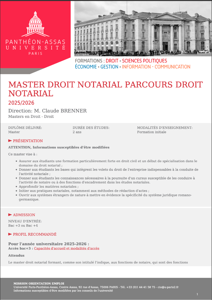 - Assurer aux étudiants une formation particulièrement forte en droit civil et un début de spécialisation dans le domaine du droit notarial ;